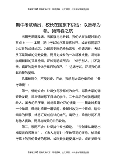 期中考试动员,校长在国旗下讲话:以备考为帆,扬青春之航.docx