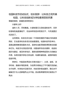 校园科技节启动仪式,校长致辞:让科技之花开满校园,让科技创新成为学校最美丽的风景.docx