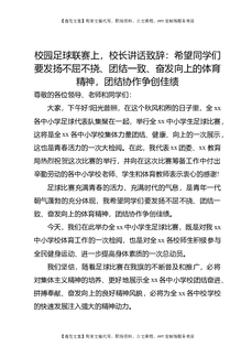 校园足球联赛上,校长讲话致辞:希望同学们要发扬不屈不挠、团结一致、奋发向上的体育精神,团结协作争创佳绩.docx