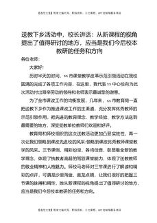 送教下乡活动中,校长讲话:从新课程的视角提出了值得研讨的地方,应当是我们今后校本教研的任务和方向.docx