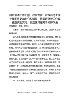 随班就读工作汇报,校长发言:在今后的工作中我们将更加耐心和细致,将随班就读工作真正落实到实处,真正使其服务于残障学生.docx