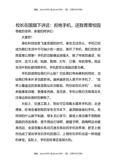 校长在国旗下讲话:拒绝手机,还我菁菁校园.docx