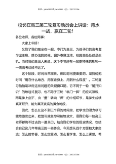 校长在高三第二轮复习动员会上讲话:背水一战,赢在二轮!.doc