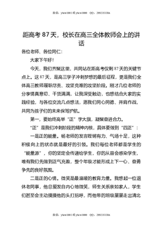 距高考87天,校长在高三全体教师会上的讲话.doc