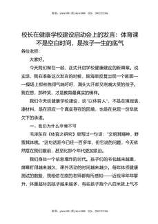 校长在健康学校建设启动会上的发言:体育课不是空白时间,是孩子一生的底气.docx