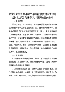2025-2026学年第二学期数学教研组工作计划:以梦为马逐春序,骐骥驰骋向未来.docx