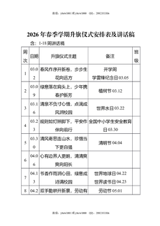 2026年春季学期升旗仪式安排表及讲话稿(含1-18周讲话稿).docx