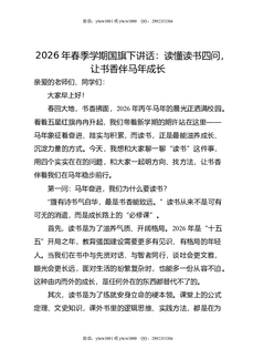 2026年春季学期国旗下讲话:读懂读书四问,让书香伴马年成长.docx