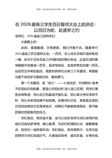 在2026届高三学生百日誓师大会上的讲话:以百日为炬,赴逐梦之约.docx