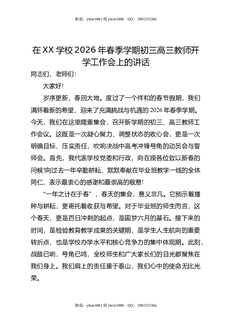 在XX学校2026年春季学期初三高三教师开学工作会上的讲话.docx