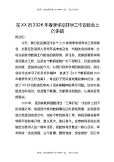 在XX市2026年春季学期开学工作安排会上的讲话.docx
