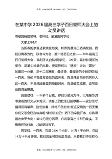 在某中学2026届高三学子百日誓师大会上的动员讲话.docx