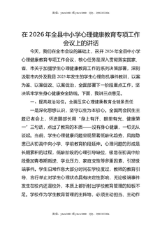 在2026年全县中小学心理健康教育专项工作会议上的讲话.doc
