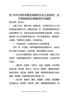 在2026年新学期全体教师大会上的讲话:忠于职教君须记,春暖花开当奋蹄.docx
