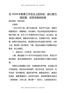 在2026年春季工作会议上的讲话:凝心聚力谋发展,攻坚克难创佳绩.doc