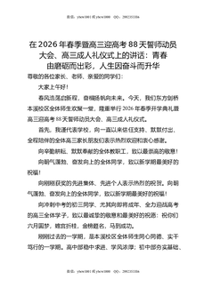在2026年春季暨高三迎高考88天誓师动员大会,高三成人礼仪式上的讲话:青春由磨砺而出彩,人生因奋斗而升华.docx
