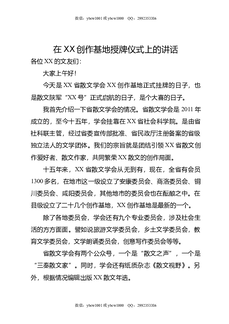 在XX创作基地授牌仪式上的讲话.doc