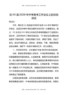 在XX县2026年中考备考工作会议上的总结讲话.docx