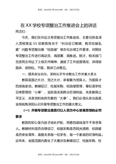 在XX学校专项整治工作推进会上的讲话.docx