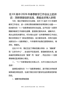 在XX高中2026年春季教学工作会议上的讲话:深耕课堂创新实践,勇毅走好育人新程.docx