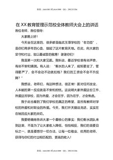 在XX教育管理示范校全体教师大会上的讲话.docx