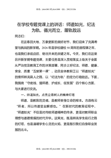 在学校专题党课上的讲话:师道如光,纪法为轨,循光而立,履轨致远.docx