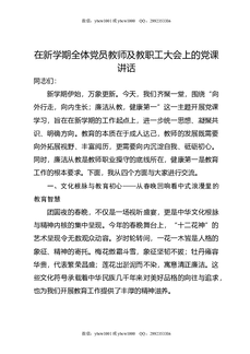 在新学期全体党员教师及教职工大会上的党课讲话.docx