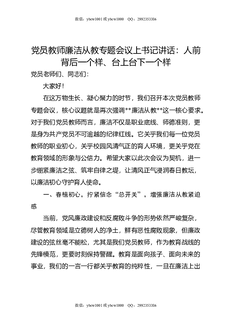 党员教师廉洁从教专题会议上书记讲话:人前背后一个样,台上台下一个样.docx