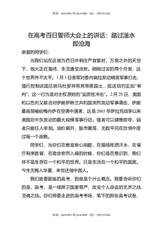 在高考百日誓师大会上的讲话:踏过滏水即沧海.docx