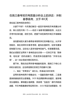在高三春考班月考质量分析会上的讲话:冲刺春季高考,大干80天.docx