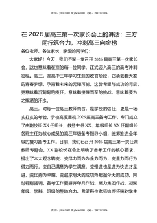在2026届高三第一次家长会上的讲话:三方同行筑合力,冲刺高三向金榜.docx