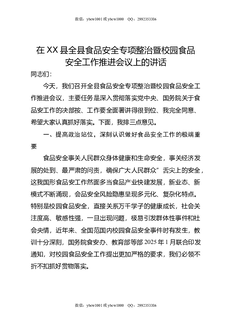在XX县全县食品安全专项整治暨校园食品安全工作推进会议上的讲话.docx