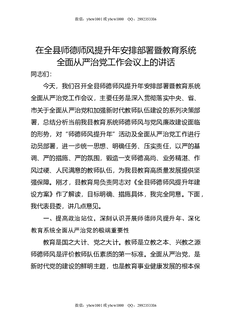 在全县师德师风提升年安排部署暨教育系统全面从严治党工作会议上的讲话.docx