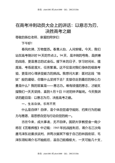 在高考冲刺动员大会上的讲话:以意志为刃,决胜高考之巅.docx