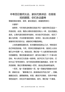 中考百日誓师大会,家长代表讲话:在爸爸妈妈眼里,你们永远最棒.docx