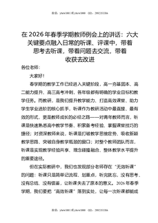 在2026年春季学期教师例会上的讲话:六大关键要点融入日常的听课,评课中,带着思考去听课,带着问题去交流,带着收获去改进.docx