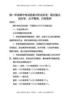 初一年级期中考试质量分析会发言面对强大的对手,从不畏惧,只有取胜.doc