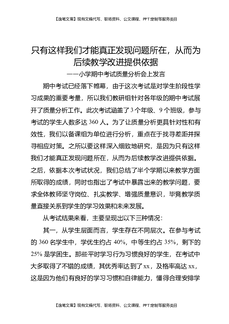 小学期中考试质量分析会上发言:只有这样我们才能真正发现问题所在,从而为后续教学改进提供依据.docx