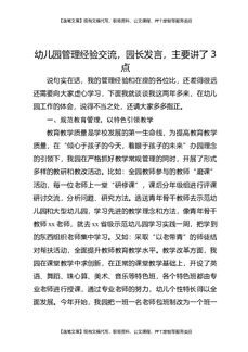幼儿园管理经验交流,园长发言,主要讲了3点.docx