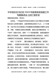 中学党总支书记在2024年教育系统党建工作专题推进会上的汇报发言
