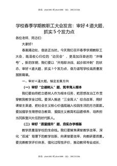 学校春季学期教职工大会发言:审好4道大题,抓实5个发力点.docx