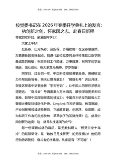 校党委书记在2026年春季开学典礼上的发言:执创新之剑,怀家国之志,赴春日新程.docx