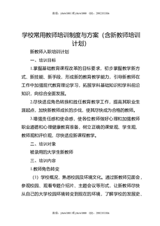 学校常用教师培训制度与方案(含新教师培训计划).docx