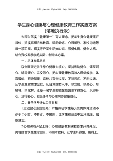 学生身心健康与心理健康教育工作实施方案(落地执行版).docx