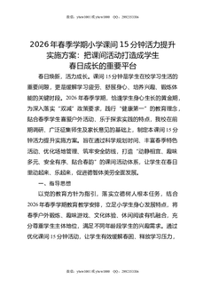 2026年春季学期小学课间15分钟活力提升实施方案:把课间活动打造成学生春日成长的重要平台.docx