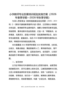 小学教师专业发展培训规划实施方案(2026年春季学期-2028年秋季学期).docx