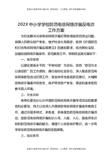202X中小学学校防范电信网络诈骗反电诈工作方案.docx