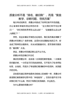 质量分析不是“排名、翻旧账”,而是“复盘教学、诊断问题、寻找方案”.doc