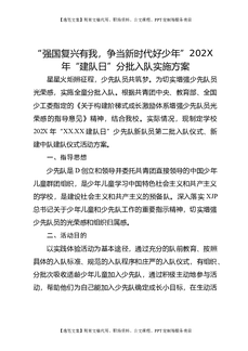 “强国复兴有我,争当新时代好少年”202X年“建队日”分批入队实施方案.doc