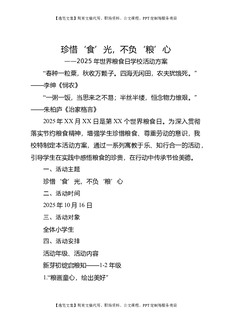 珍惜‘食’光,不负‘粮’心202X年世界粮食日学校活动方案.doc